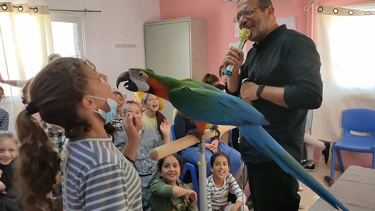 הילדים וגם.. התוכים נהנים ממופע מרתק